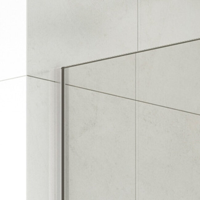Mampara de ducha frontal con panel fijo de 8mm más puerta abatible de 6mm con bisagra acero inoxidable, con cierre imán a pared. Cristal templado y perfilería en aluminio. Diseño minimalista actual sin perfilería inferior. Medidas a elegir. Entrega inmediata.