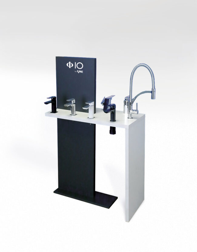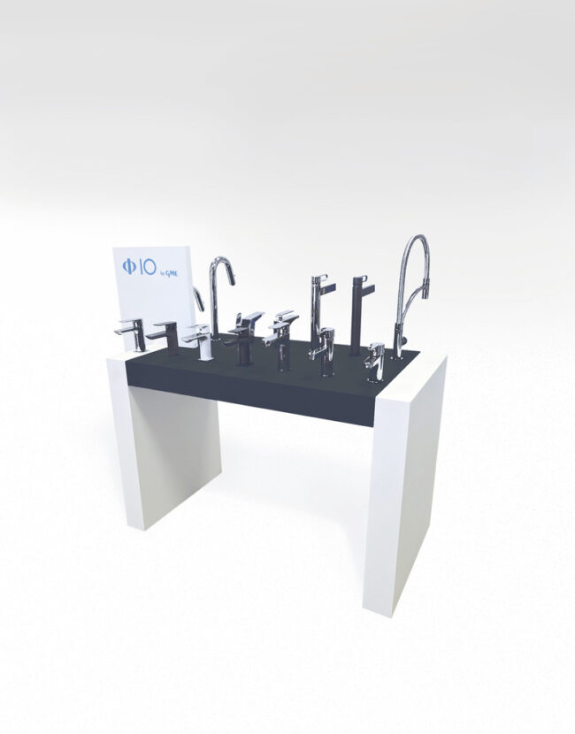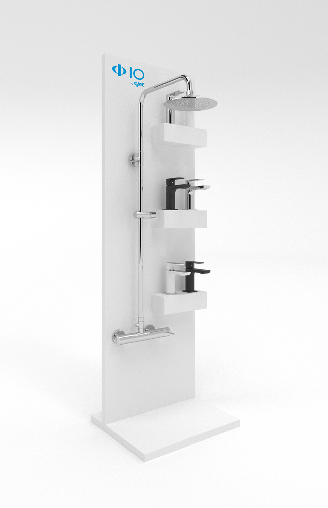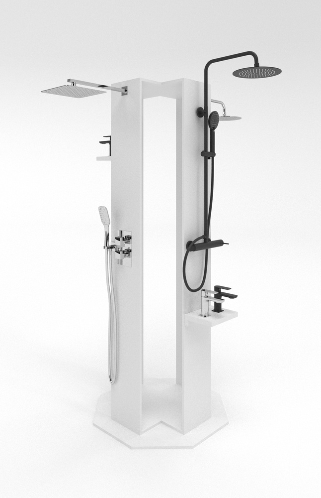 Expositor para 4 columnas de ducha o conjuntos de empotrar adaptable.