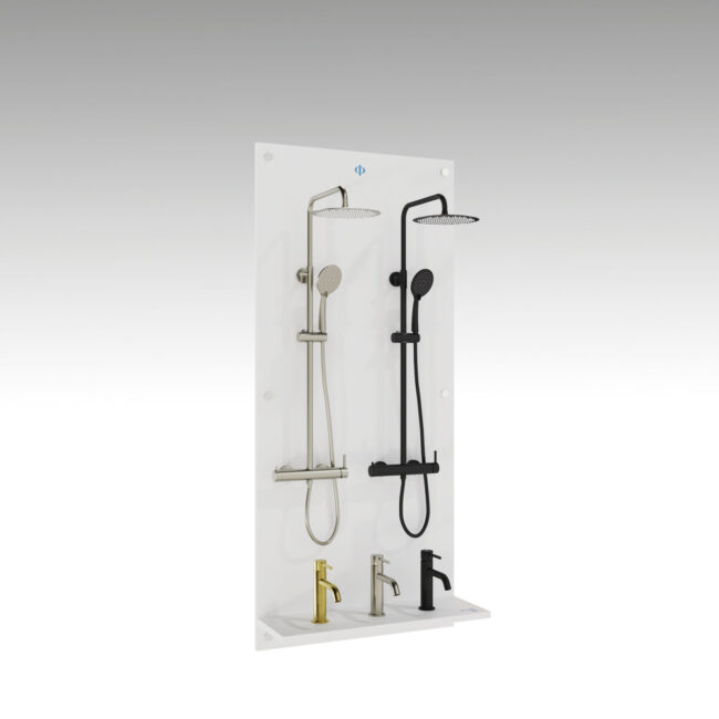 Para unión de fijo + fijo en oro que permite crear una mampara con lateral fijo conectado con el cristal fijo del frontal.