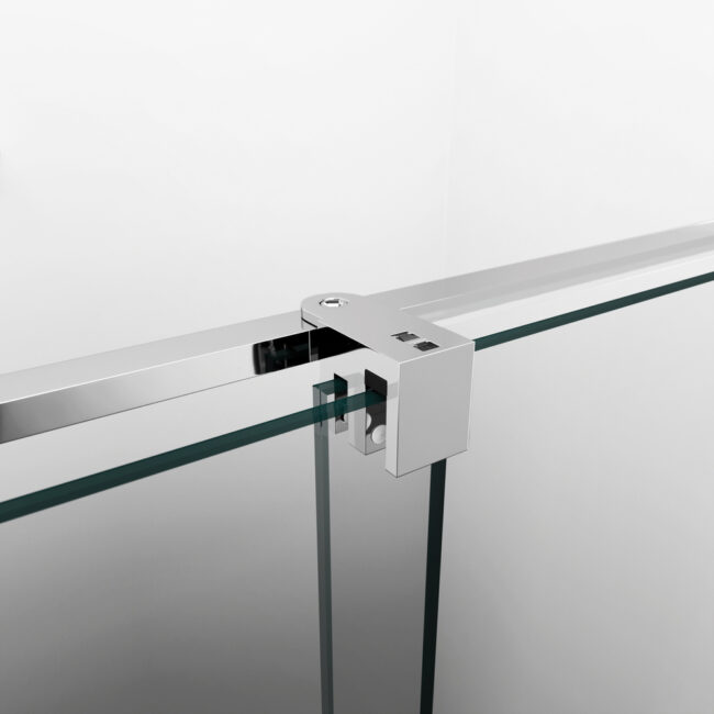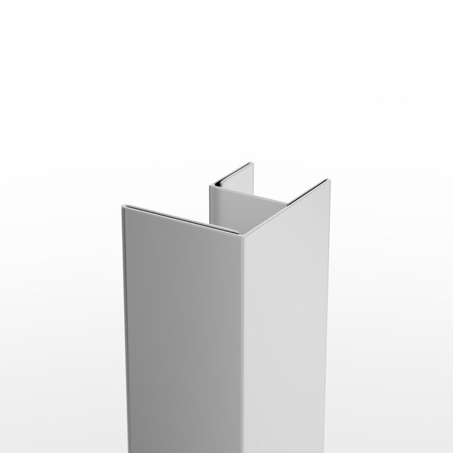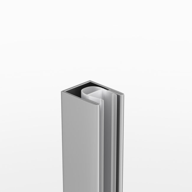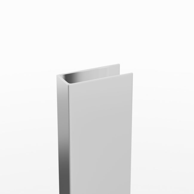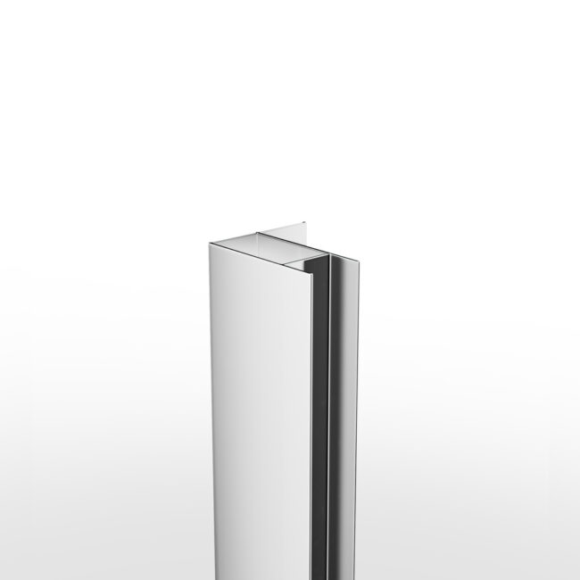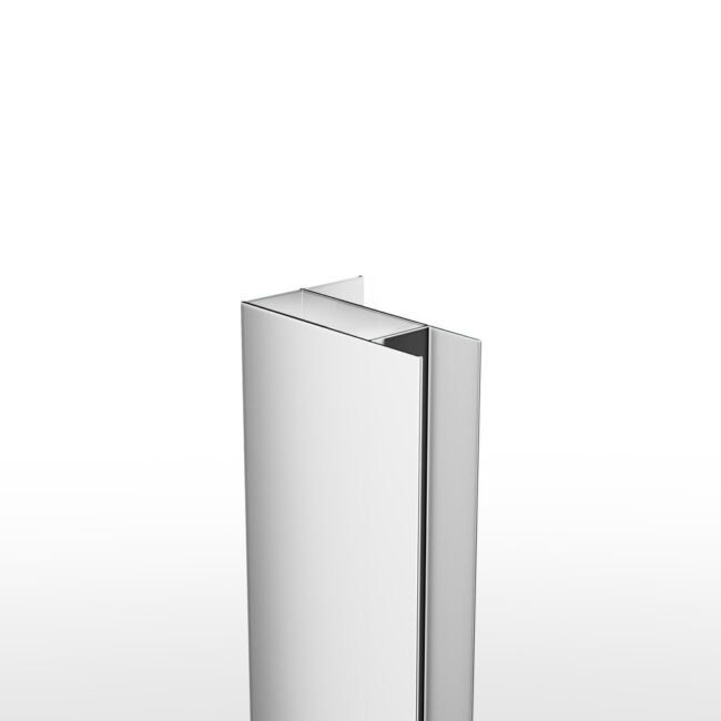 Perfil fabricado en acero inoxidable que permite la unión de un lateral fijo por el lado del cristal fijo del frontal.