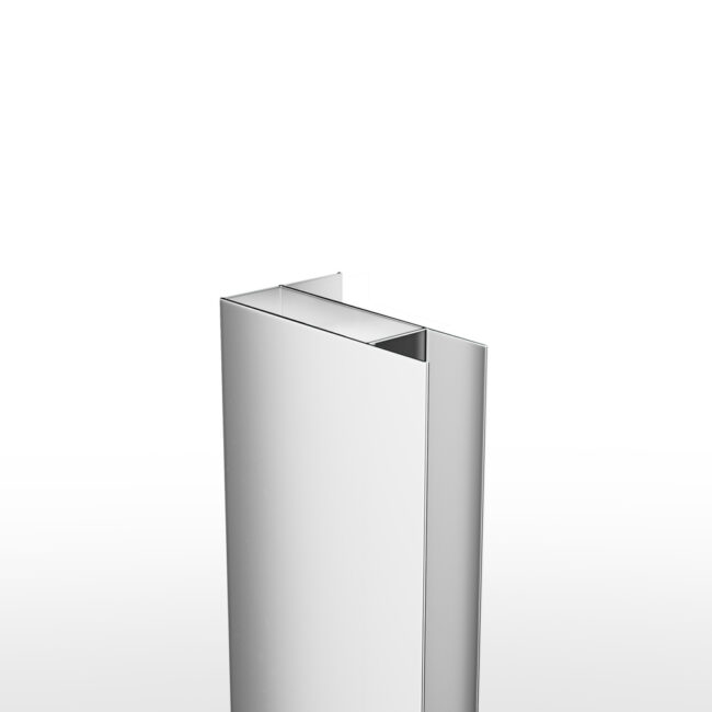 Perfil de compensación para parte fija del frontal fabricado en acero inoxidable que permite aumentar el rango de la mampara hasta 1,5cm.