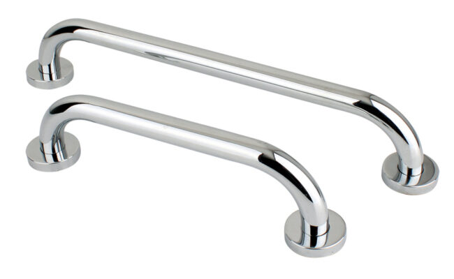 Barras de apoyo para ducha en distintas medidas, fabricadas en acero inoxidable.